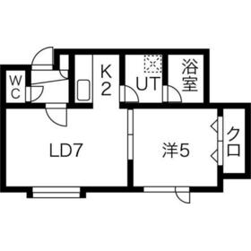 間取り 1LDK(LD7・K2・洋室5) 専有面積 32.80m²