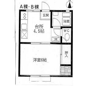 間取り 1K(和 6 K 4.5) 専有面積 24.79m²