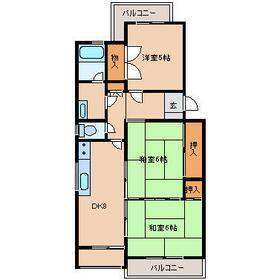 間取り 3DK(和 6・6 洋 5 DK 8) 専有面積 63.00m²