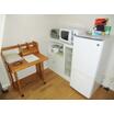冷蔵庫、給湯、フローリング、室内物干し、都市ガス、エアコン、家具付き、家電付、照明器具 |