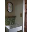 洗面台はモザイクタイル貼りがカワイイ造作洗面台。楕円形の鏡もポイント。