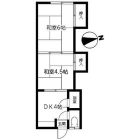 間取り 2DK(和 6・4.5 DK 4) 専有面積 26.00m²