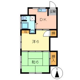 間取り 2DK(和 6・6) 専有面積 32.80m²