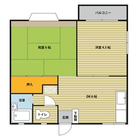 間取り 2DK(和 6 洋 5 DK 6) 専有面積 37.19m²