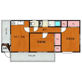 間取り 2DK(洋 6・6 DK 7.5) 専有面積 45.54m²