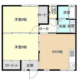 間取り 2DK(洋 6・6 DK 8) 専有面積 46.37m²
