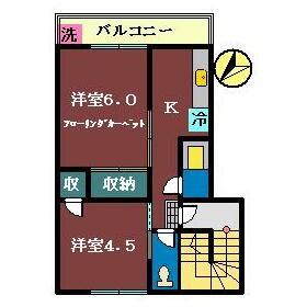 間取り 2K(洋 6・4.5 K 3) 専有面積 30.58m²