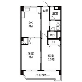 間取り 2DK(洋 7・6.5 DK 7) 専有面積 47.00m²