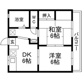 間取り 2DK(和 6 洋 6 DK 6) 専有面積 35.31m²