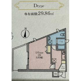 間取り 1K(洋 9.8) 専有面積 29.86m²