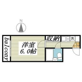 間取り 1K(洋 6) 専有面積 16.56m²