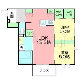 間取り 2LDK(洋 5・5 LDK 13.3) 専有面積 61.14m²