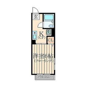間取り 1K(洋 6) 専有面積 18.00m²