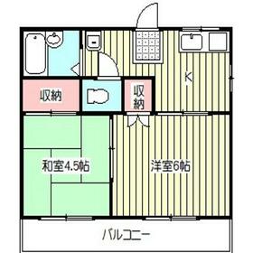 間取り 2DK(和 4.5 洋 6) 専有面積 31.00m²