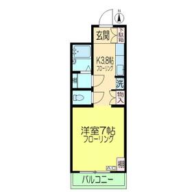 間取り 1K(洋 7 K 3.8) 専有面積 26.62m²