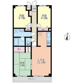 間取り 3LDK(和 6 洋 5.7・4.2 LDK 11.2) 専有面積 61.48m²