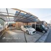 旭化成ヘーベルハウス施工の重厚感ある大型戸建て住宅の賃貸募集です。敷地面積はゆとりの約100坪。駐車スペースは最大5台まで可能で、カーポート付きのため雨の日も安心です。