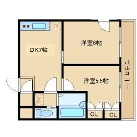間取り 2DK(洋 6・5.5 DK 7) 専有面積 39.05m²