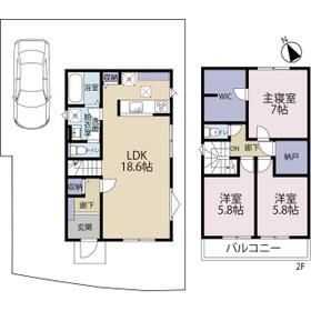 新築戸建賃貸!トイレ2箇所、大型ウォークインクローゼット、納戸、駐車場1台付き(サイズ要確認)