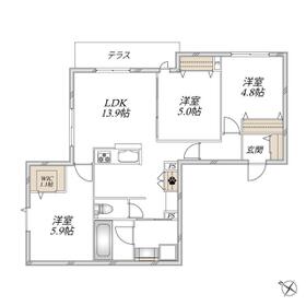 間取り 3LDK(洋 5.9・5・4.8 LDK 13.9) 専有面積 69.87m²