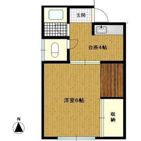 間取り 1K(洋 6 K 4) 専有面積 21.48m²