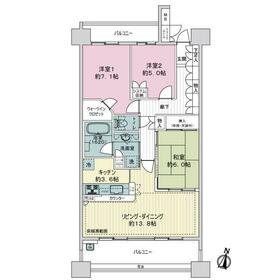 専有面積83.84平米、13階部分につき眺望良好なお部屋です。