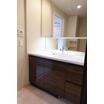 お手入れのしやすい一体型洗面ボウルのある洗面化粧台