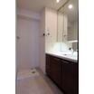 小物類を収納できる三面鏡付き洗面台を採用し機能性に富んだ洗面所