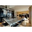 ・キッチン設備が機能的に収納された背面収納 キッチンとダイニングテーブル一体のアイランドキッチン