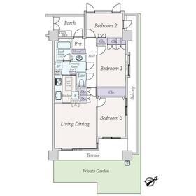 ・1階部分、角部屋、専用庭×テラス×バルコニー