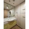 ・身だしなみを整えやすい、三面鏡・シャワー付き洗面化粧台です。リネン庫やボウル下部収納があり、洗面用品をまとめることができます。
