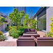 木目調のテラスを配し、季節の花々が植栽された彩り豊かなオープンテラスがあります。