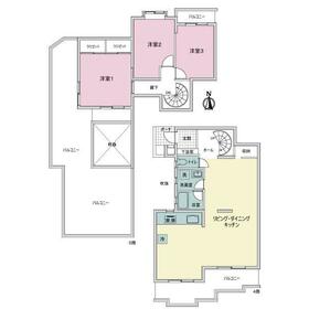 三面バルコニー(南・西・北)。
