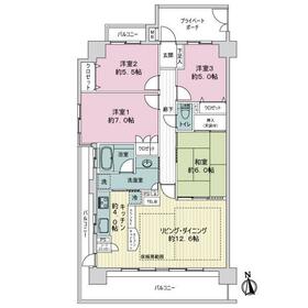 南・西・北の三面バルコニー角住戸で、採光、通風良好なお部屋です。