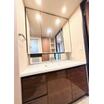 ・鏡裏が収納の三面鏡洗面化粧台