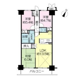 3LDK(LDK13.5 和室6 洋室5.4 洋室4.7) |