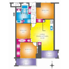 3LDK(LDK12.8帖 洋室5.7帖 洋室5.7帖 洋室4.8帖) |