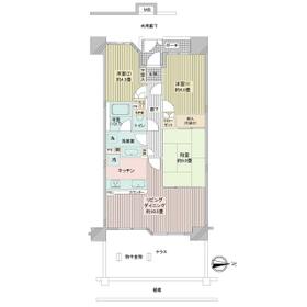 65.45㎡の3LDK、1階部分につきテラス付設
