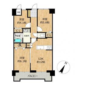 間取り 3LDK 専有面積 63.00m²(壁芯)