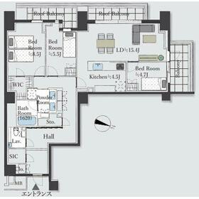 3LDK(LD15.4、K4.5、洋8.5、5.5、4.7) |