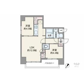 間取りは専有面積51.05平米の2LDK。LDK約12.8帖のセンターインのプラン。