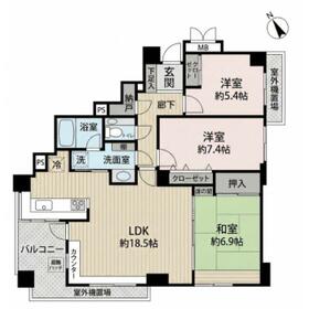 3LDK(LDK18.5、和6.9、洋7.4、5.4) |