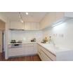 <LDK17.1帖>作業動線が広いL型のシステムキッチン、洗面化粧台、ユニットバス、トイレなど設備新品フルリノベーション。玄関にはシューズインクローゼット新設