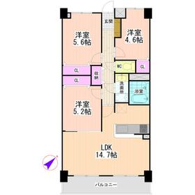 3LDK(洋 5.6・5.2・4.6 LDK 14.7) |
