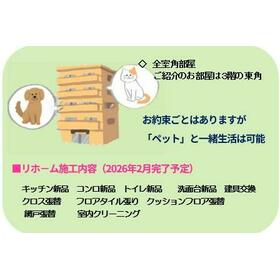 ■水回り:2026年2月 キッチン、トイレ、洗面所 1・キッチン新品 2・トイレ新品 3・洗面台新品 ■内装:2026年11月 全室クロス張替え、床(フローリング等)、壁・天井(クロス・塗装等)、建具(室内ドア等) 1・網戸張替 2・室内クリ-ニング ※実施年月は最も古い履歴を表示 |