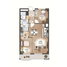 間取り 2LDK(洋 5・5.5 LDK 14.5) 専有面積 61.73m²(壁芯)