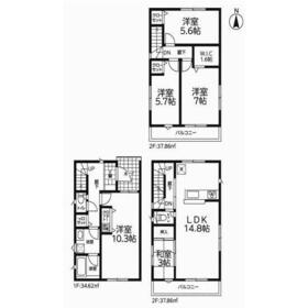 4LDK(洋室10.3帖 LDK14.8帖 和室3.0帖 洋室5.6…) |