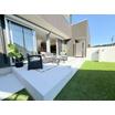 大開口サッシから庭へとつながる、開放感あふれる24帖LDK。高い塀に囲まれたお庭は、外からの視線を気にせず遊べます。さらに屋上にはスカイデッキ。山並みを望みながら、BBQや星空時間を楽しめる贅沢空間。