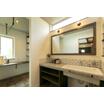 ■かっこいい造作洗面台が入ったランドリールームでスムーズな家事同線。