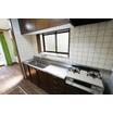 ダイニングキッチンは、コンパクトながらも使いやすく整った設備。ガスコンロ・換気フード・上下収納付きのキッチンは実用性が高く、日常生活にしっかりと対応します。